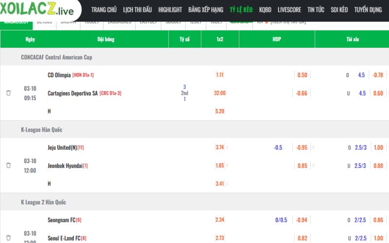- Bạn có thể xem tỷ lệ kèo ngay bên cạnh thông tin trận đấu.